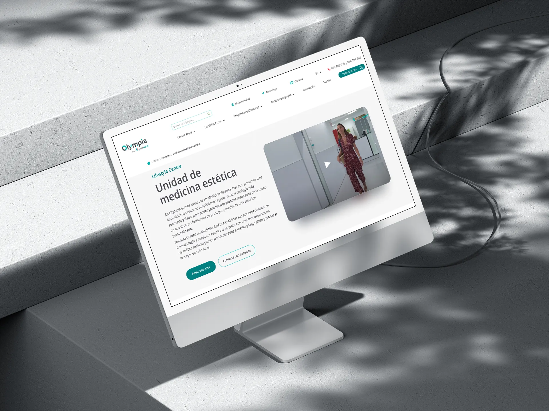Una web intuitiva y atractiva que guía al usuario de forma natural hacia sus objetivos, ya sea agendar una consulta, descubrir especialidades o explorar servicios de bienestar. La experiencia mejora la percepción de la marca, transmitiendo profesionalismo y modernidad sin perder el toque humano. De este modo, Olympia se posiciona como un referente no solo en medicina, sino también en salud integral, estilo de vida y deporte, ofreciendo una experiencia digital coherente con su propuesta de valor.